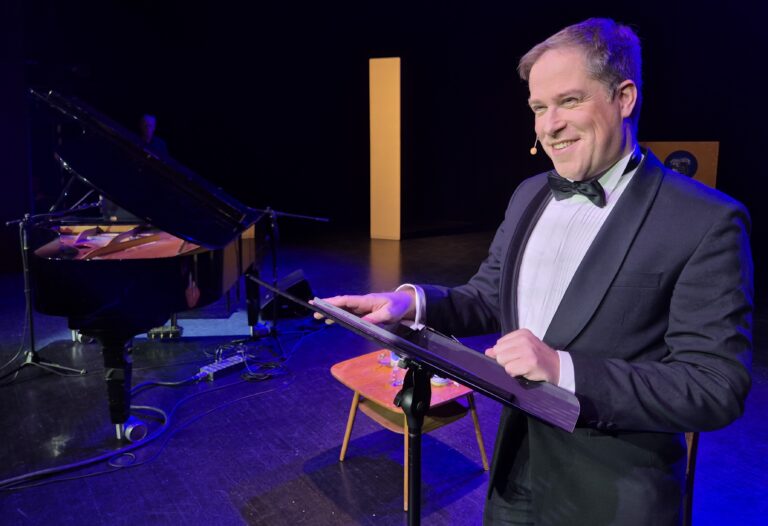 Stehender Applaus, Bravo-Rufe: Die Zuschauenden zeigten sich von dem Konzert-/Showabend „Theater, Theater“ von und mit Philip Lüsebrink (am Klavier: Markus Bruker) begeistert und die Mitglieder der Niederdeutschen Bühne mehr als gerührt. Der Opernsänger, Autor, Regisseur und langjähriger Freund des Vereins nahm die rund 400 Gäste im Theatersaal am 24. Januar während dieser Benefizveranstaltung mit auf eine musikalische Reise mit Geschichten und heiteren Anekdoten durch die 100-jährige Geschichte der Bühne.